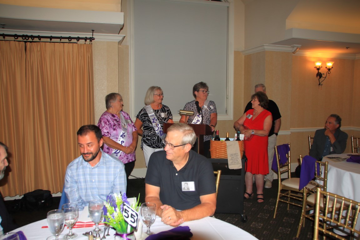 The 50/50 raffle was won by Bonnie, who donated the amount to the Class of 1969 Scholarship Fund in honor of her parents, Ed & Lea McDaniel. Pictures donated by John Petro and Bill Harbison; three Purple and White afghans hand made by Rovena (Raysor) Parmley; and a wine basket created by Bonnie were also part of the raffle.
