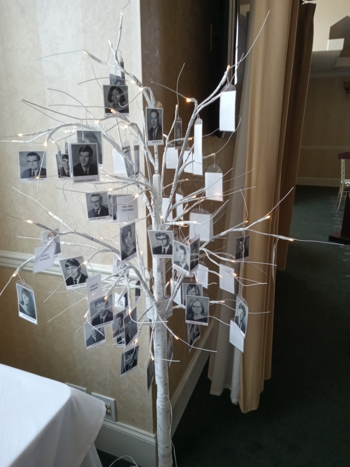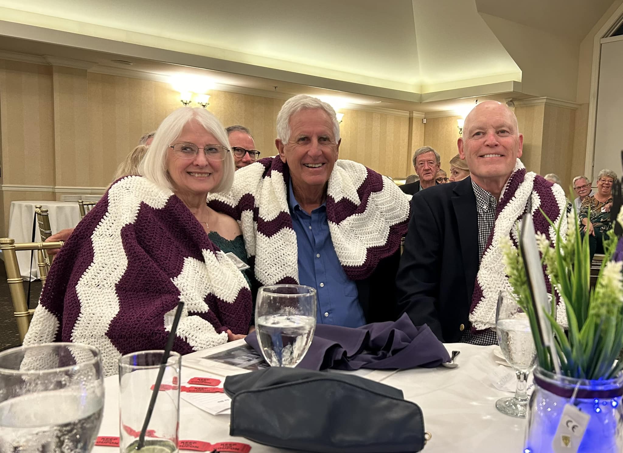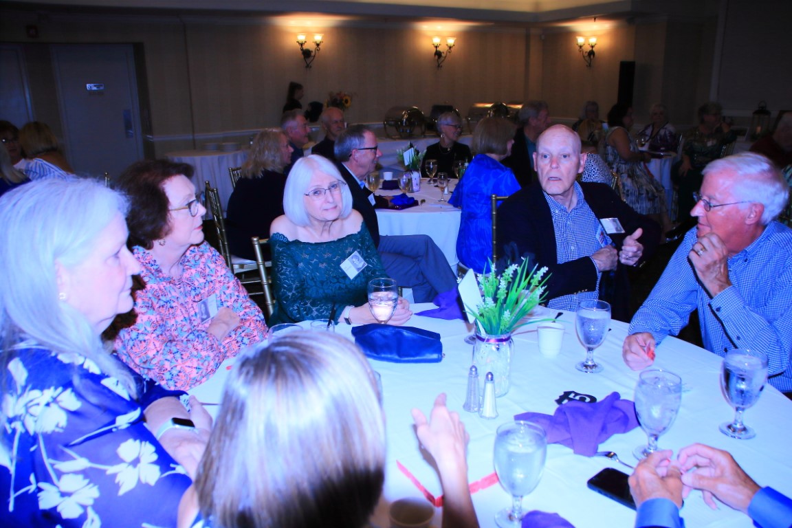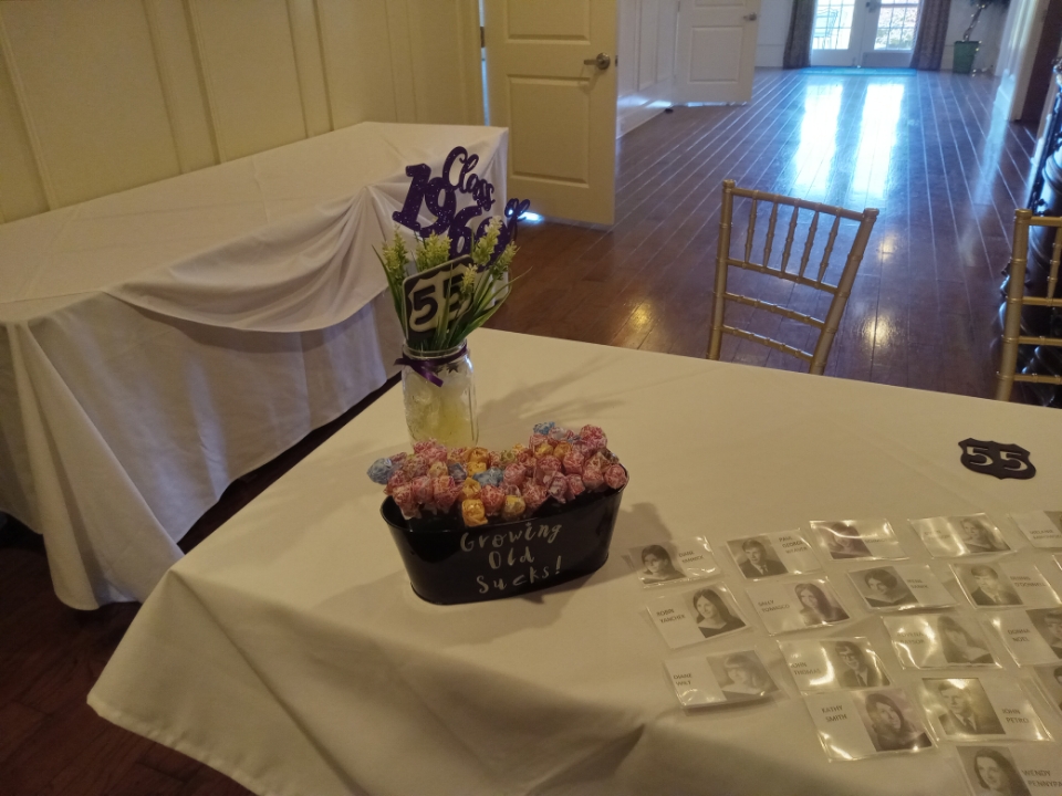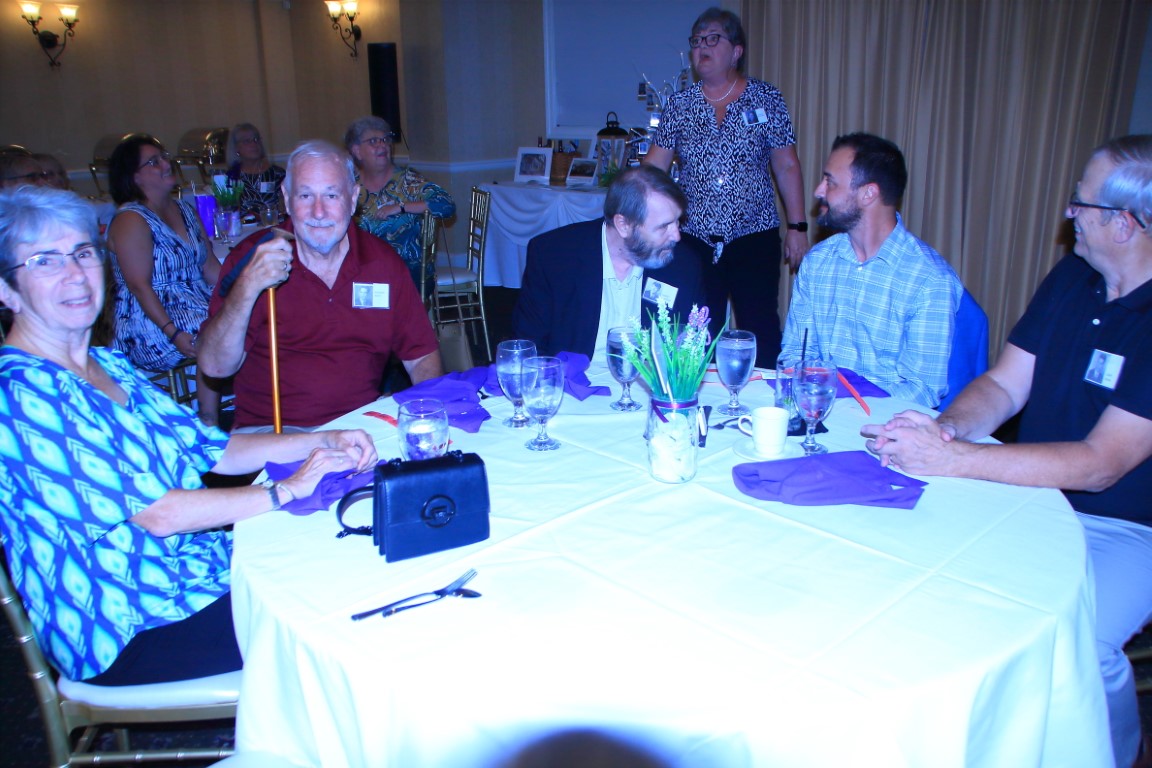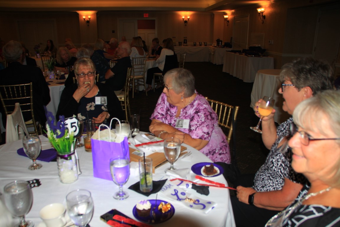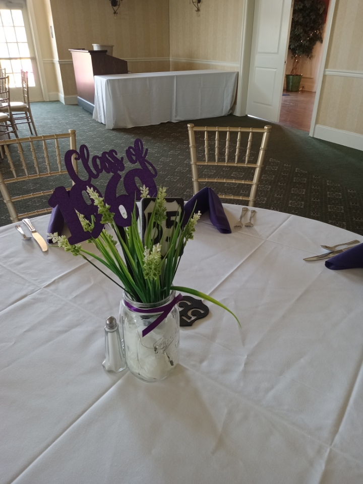 The 50/50 raffle was won by Bonnie, who donated the amount to the Class of 1969 Scholarship Fund in honor of her parents, Ed & Lea McDaniel. Pictures donated by John Petro and Bill Harbison; three Purple and White afghans hand made by Rovena (Raysor) Parmley; and a wine basket created by Bonnie were also part of the raffle.